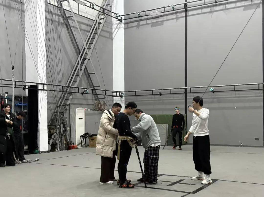 比如群众兄被吊在半空中的作为,其实亦然通过动捕完成的,咱们用威亚将技击淳厚悬空,两名使命主说念主员通过滑轮放浪威亚的出动轨迹,技击淳厚在空中顺着位移完成挥舞作为,汇集完成后,再由动画团队在此基础上进行夸张和非东说念主化惩办。